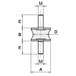 O apoio anti-vibratório cilíndrico côncavo com ligação macho/macho em aço zincado é indicado para aplicações onde existem esforços combinados de compressão e corte.