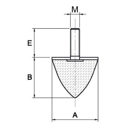 Apoio anti-vibratório cónico com rosca macho em aço zincado, indicado para absorção de impactos e função de batente.