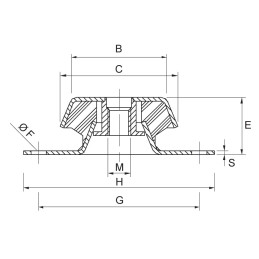 VERSÃO DE SUPORTE: Com porca soldada rosqueada MATERIAL DO CORPO: Mistura de borracha NR/SBR TOLERÂNCIA NA DUREZA: +/- 5 Shore A PARTE METÁLICA E/OU FIXAÇÃO: Chapa de aço zincado ÁREAS DE APLICAÇÃO: Geradores de corrente, suportes para motor, maquinaria, estruturas e motobombas.