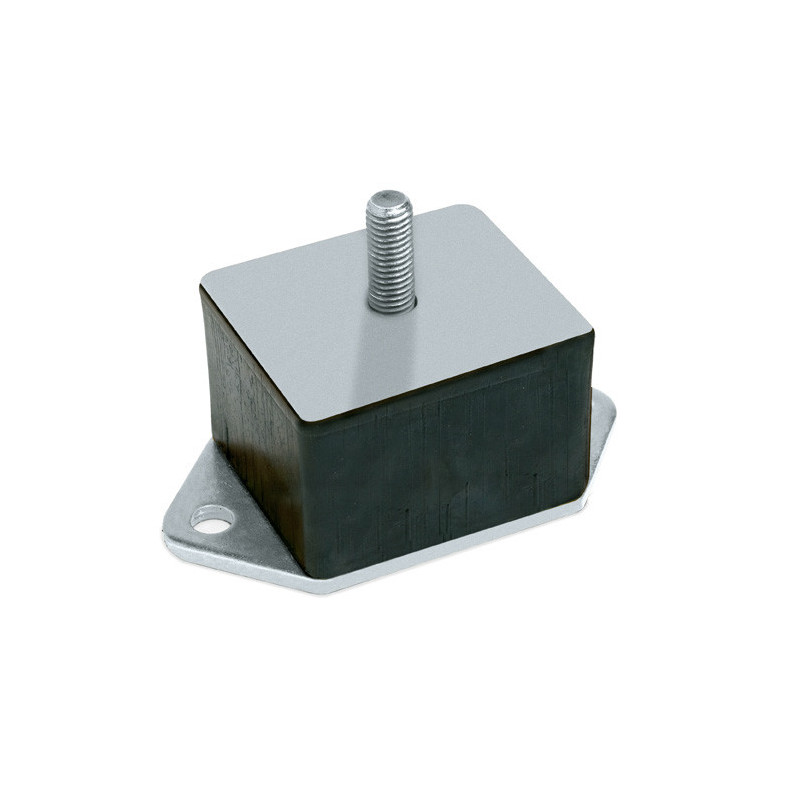 Apoio anti-vibratório tipo campânula com base quadrada e dado roscado, indicado para aplicações de elevada carga e máxima estabilidade.