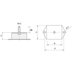 | Código | C (mm) | B (mm) | G (mm) | E (mm) | F (mm) | Carga Máx. (daN) |
