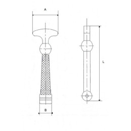| Código | Comprimento total L (mm) | Largura A (mm) | Largura B (mm) |